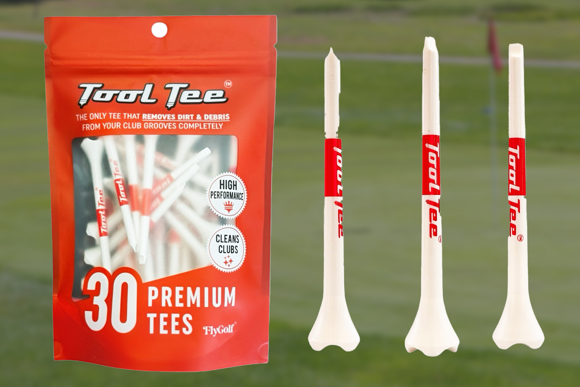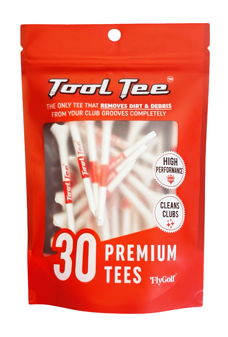 The only premium golf tee with a built-in groove-cleaning tip designed to reach inside the grooves — not just wipe the surface.